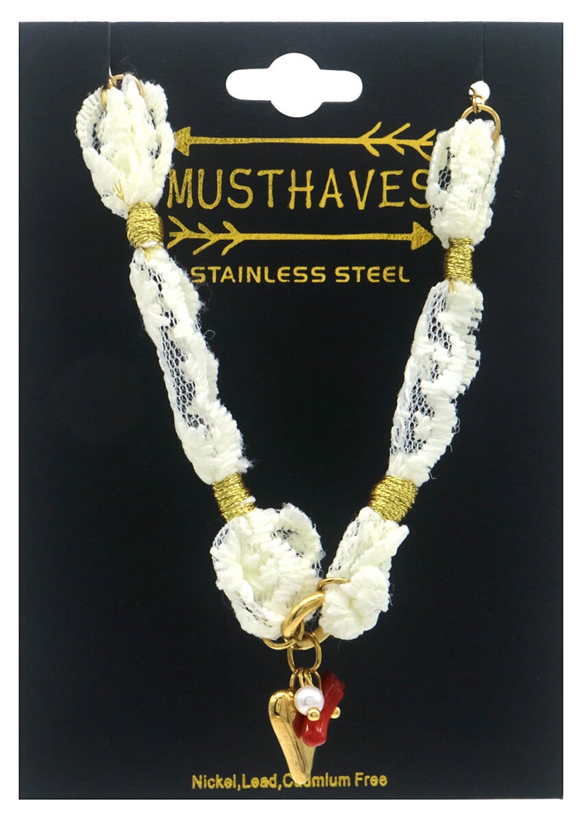 Armband Lace-heart. Trend alert! Helemaal nieuw zijn deze armbanden met kant! Supermooi voor een speciale gelegenheid of een vleugje verfijning toevoegen aan uw dagelijkse look, met deze armband zit je altijd goed. Gemaakt van Stainless steel en verstelbaar van 16-21 cm.