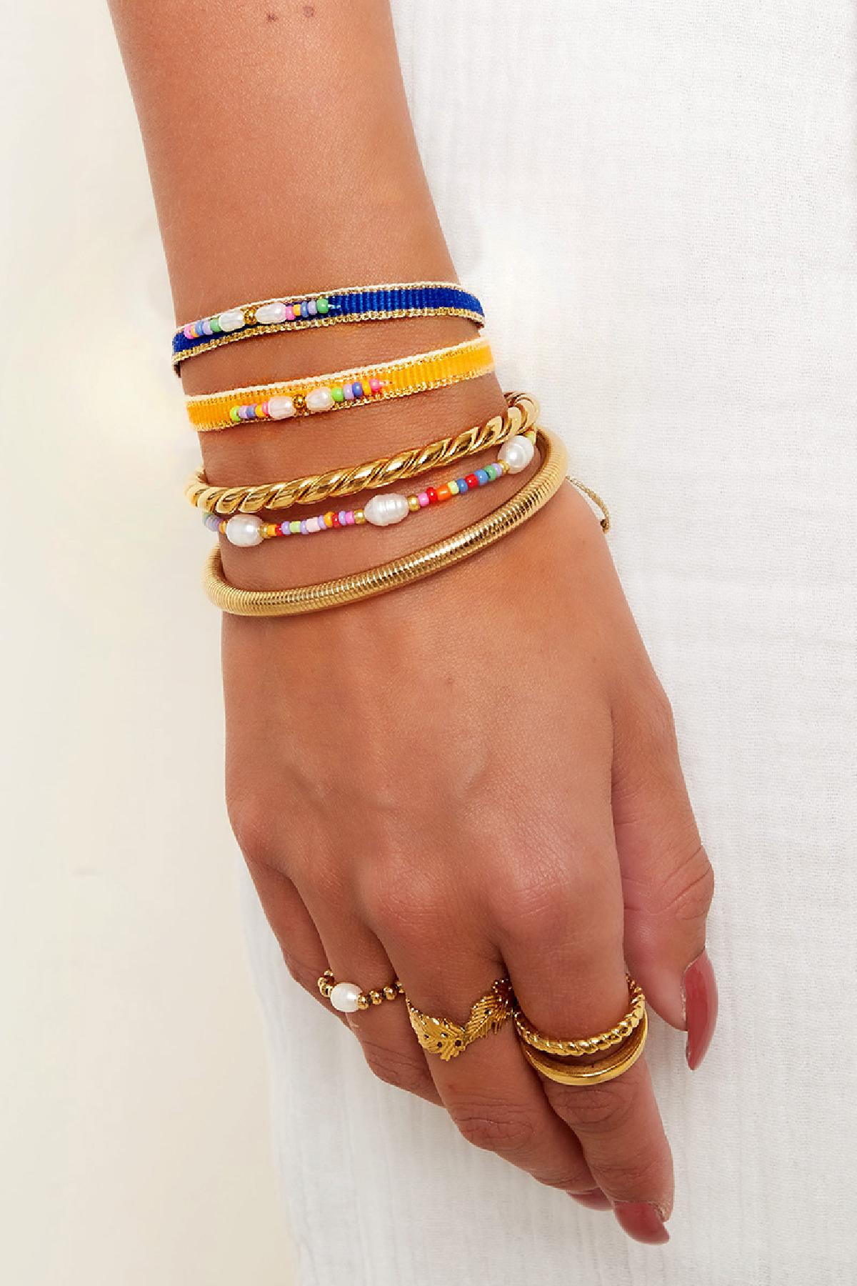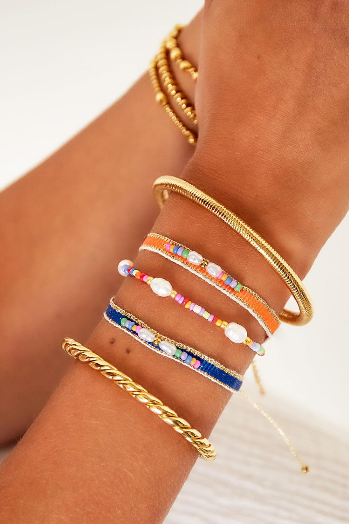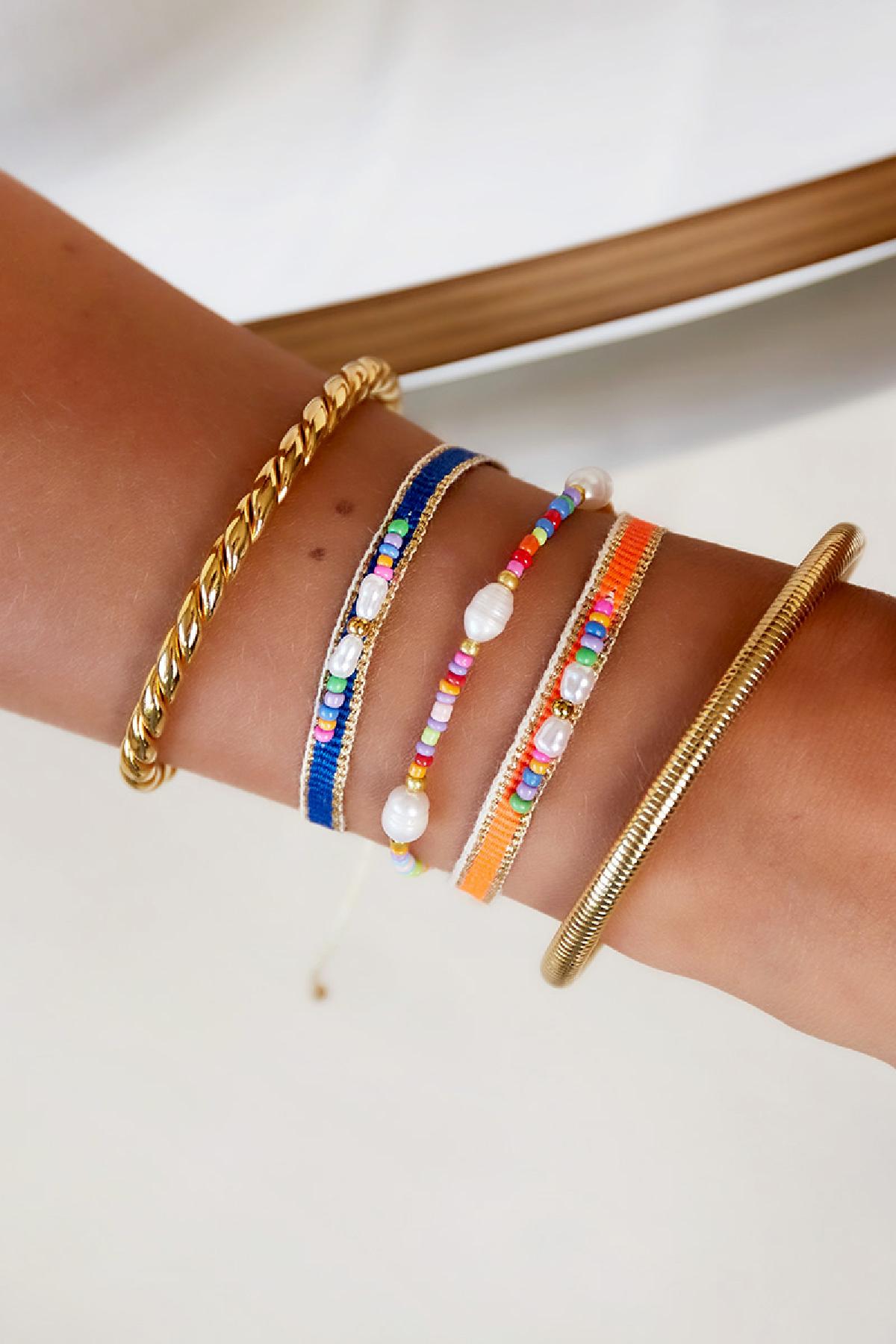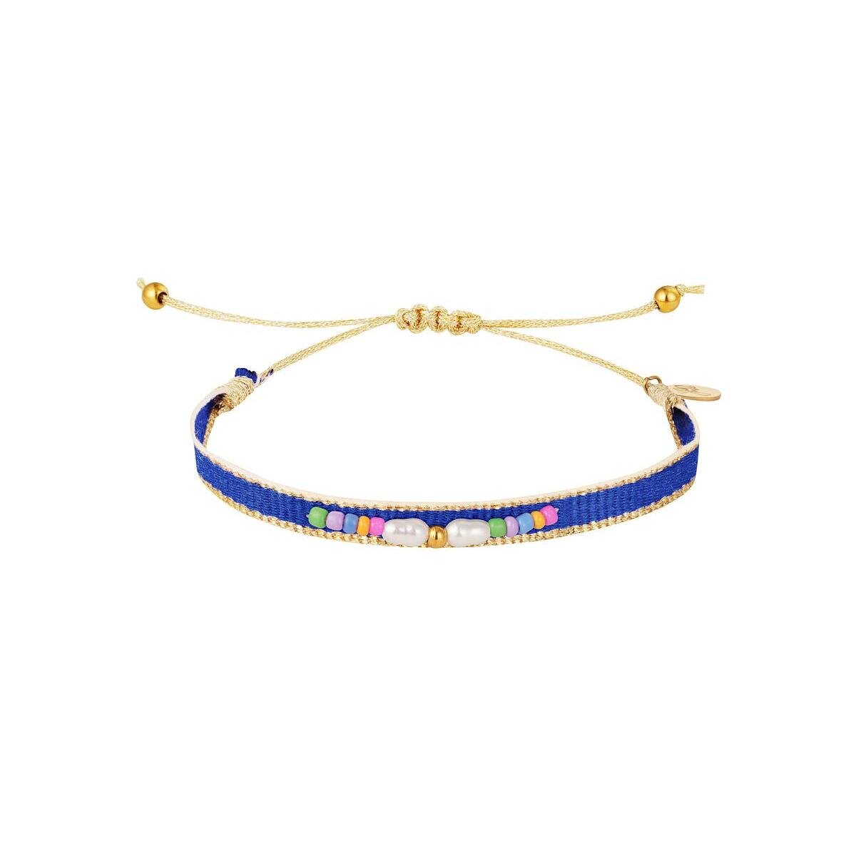 Armband touw met hart en kralen. Deze armband is superleuk door de kralendetails en makkelijk zelf te sluiten door aan te touwtjes te trekken. De lengte is 16,5 cm. Materiaal: Polyester, parels, glas, stainless steel.