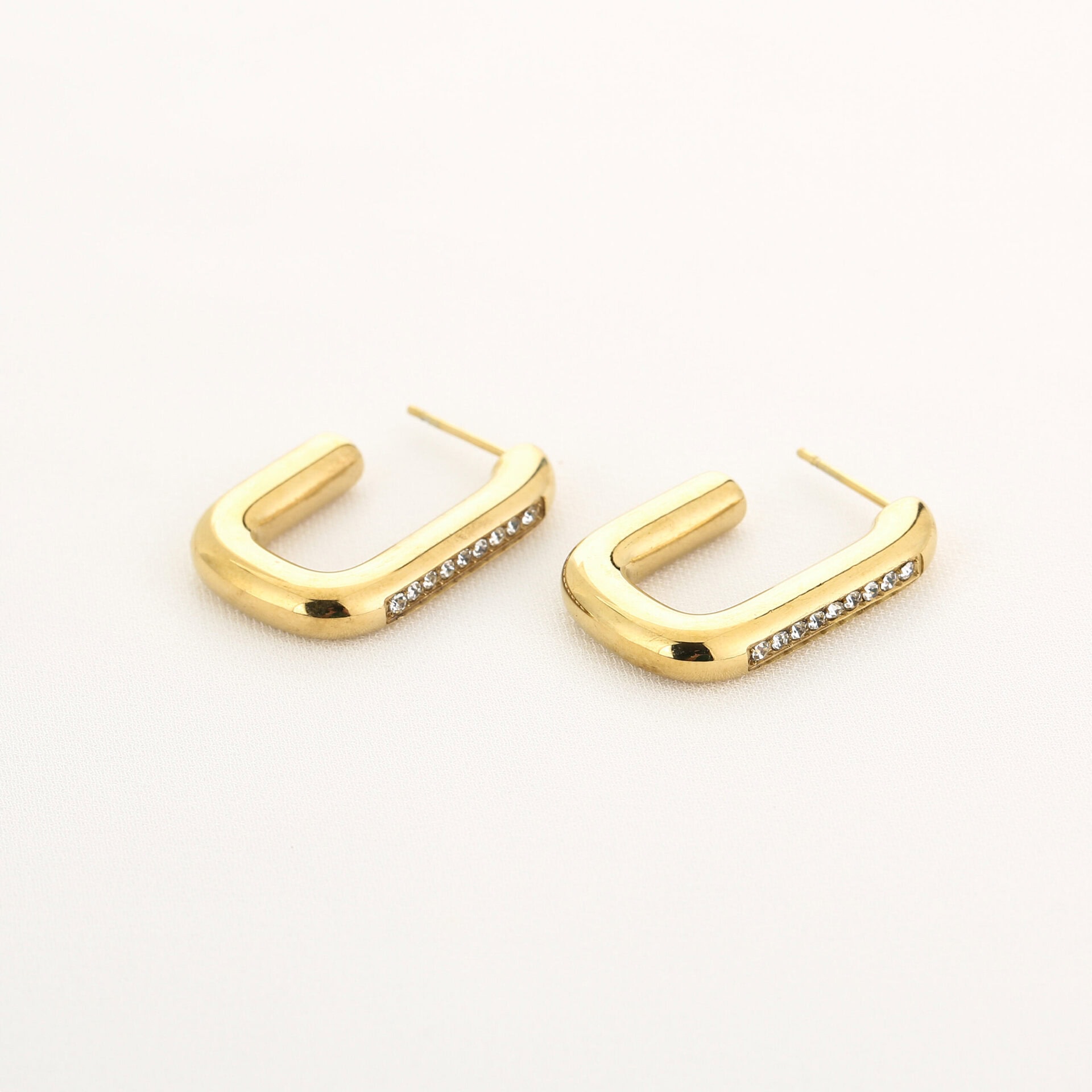 Chunky oorbellen met strass. Deze stainless steel oorbellen in de kleuren goud en zilver passen perfect bij jouw party-outfit.