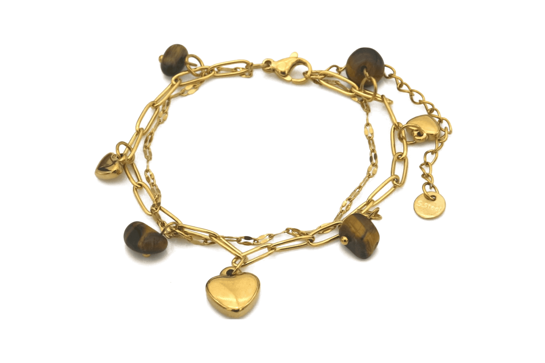 Dubbele Armband Bruine Stenen En Hart is de trendy musthave van het seizoen! Een dubbele schakelarmband met leuke details.