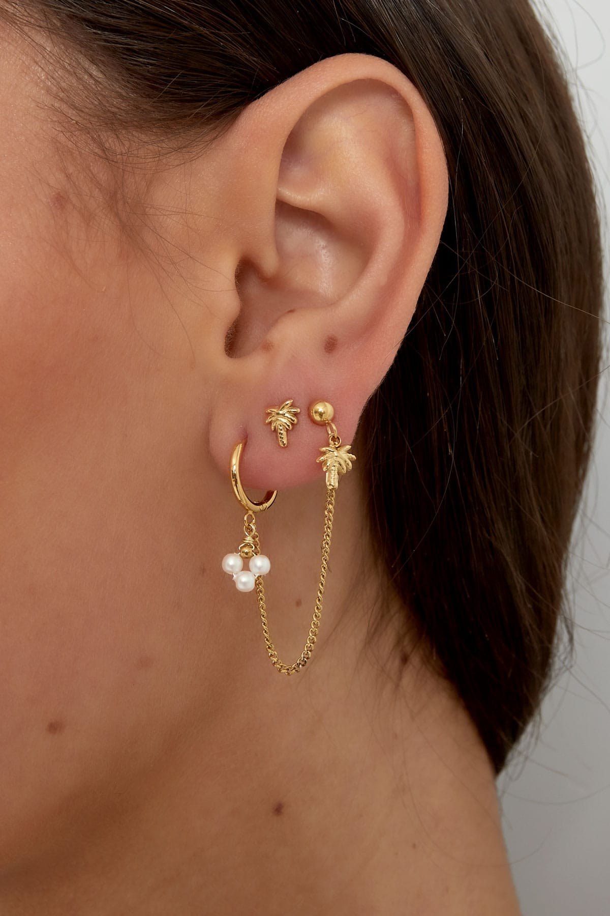 Dubbele oorbel met palm en parel zilver. Dit is superleuk! je doet het oorringetje door je 1e gaatje en het stekertje door het 2e gaatje. Met een palmboompje en parels, gemaakt van Stainless steel. Afmeting 1,2 x 7,5 cm. Let op! Dit is 1 oorbel, dus voor 1 oor!