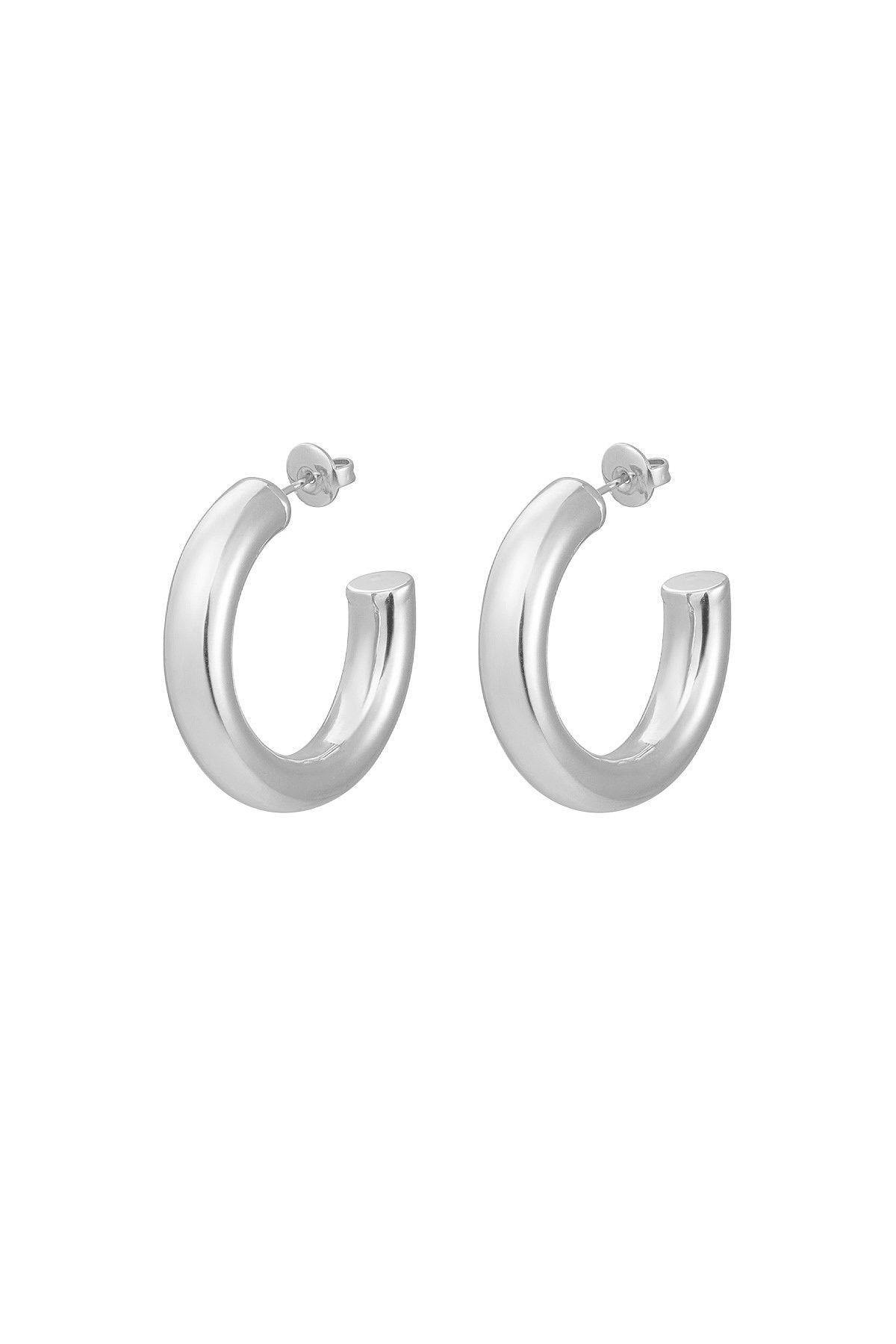 Earrings basic thick small. Mooie gladde oorringen in een dikkere breedte en de ideale basis om te combineren met andere oorbelletjes, maar zeker ook een statement om zo te dragen. Ze zijn 3 cm groot, gemaakt van Stainless steel, en je shopt ze in goud en zilver.