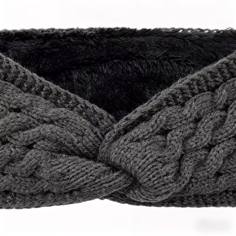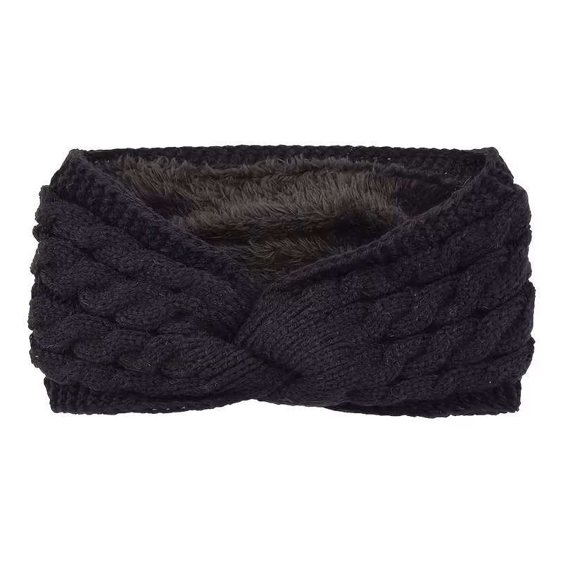 Gebreide winterhaarband twist met teddy voering in diverse kleuren