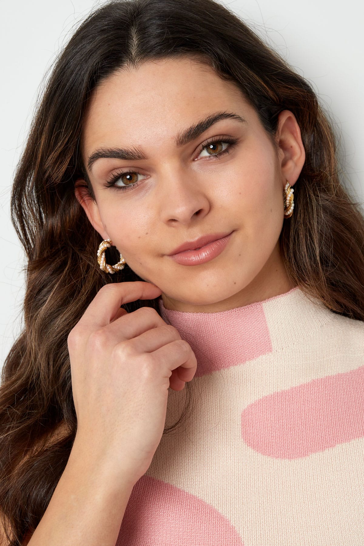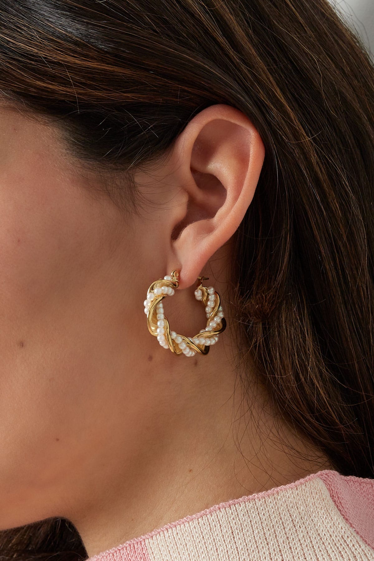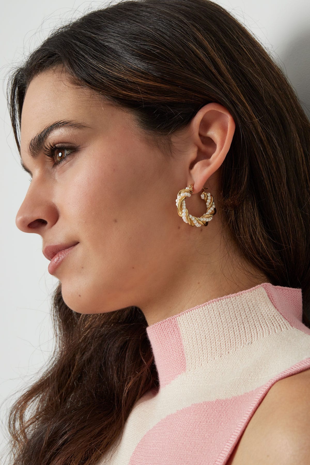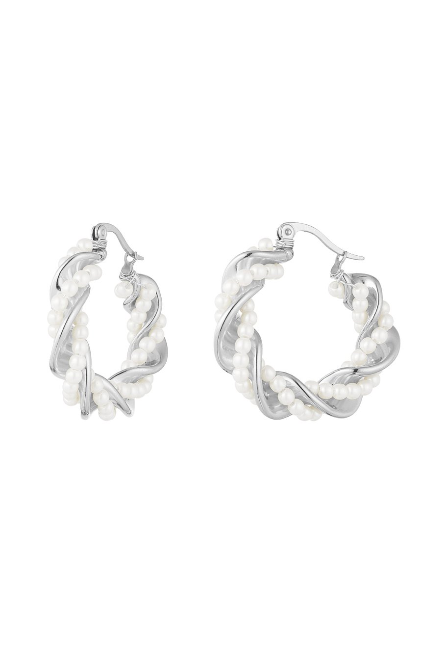 Gedraaide oorbel parelparty. Pareloorbelen, maar dan even anders! Deze oorbellen zijn chic maar toch speels. Gemaakt van Stainless steel en nepparels. De afmeting is 3,3 cm.