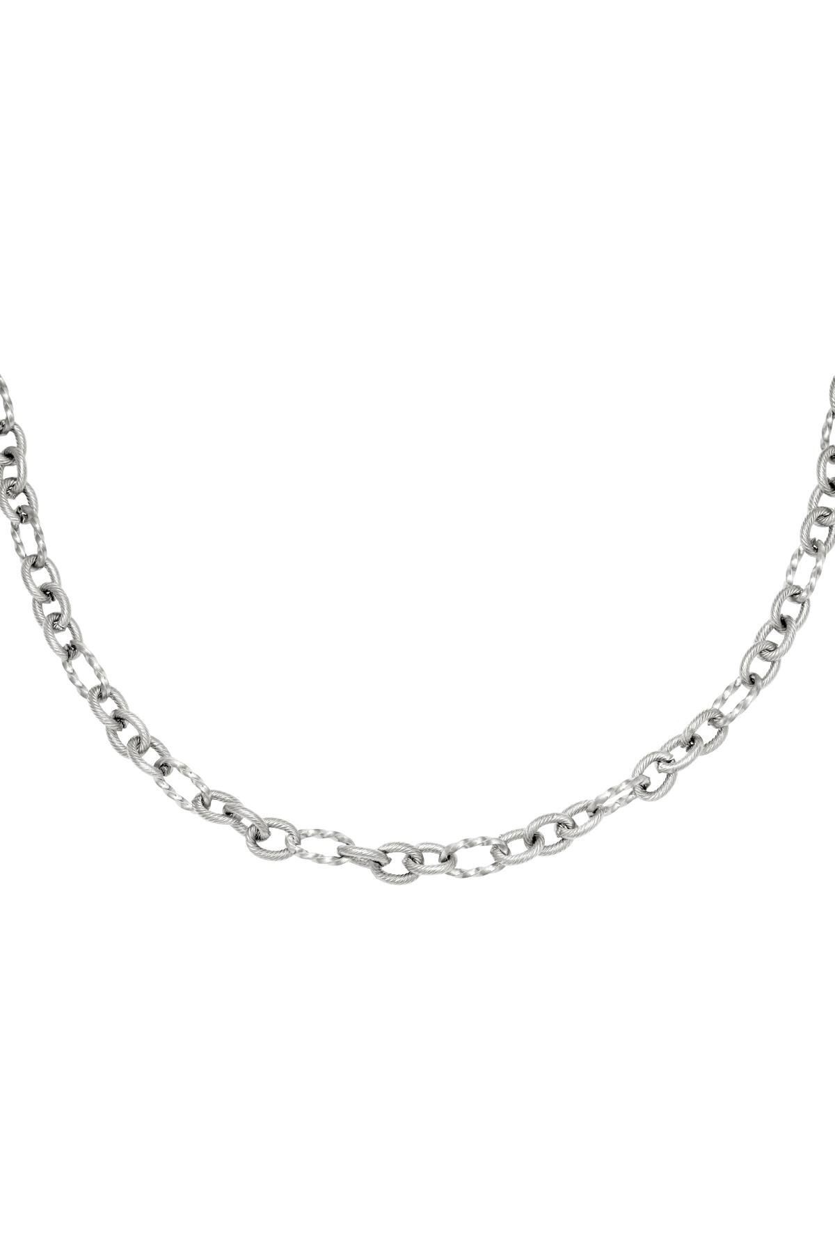 Ketting Criss-cross Zilver. Ketting met grove bewerkte schakels van Stainless Steel in de kleur zilver. De lengte is verstelbaar van 42 tot 49 cm.