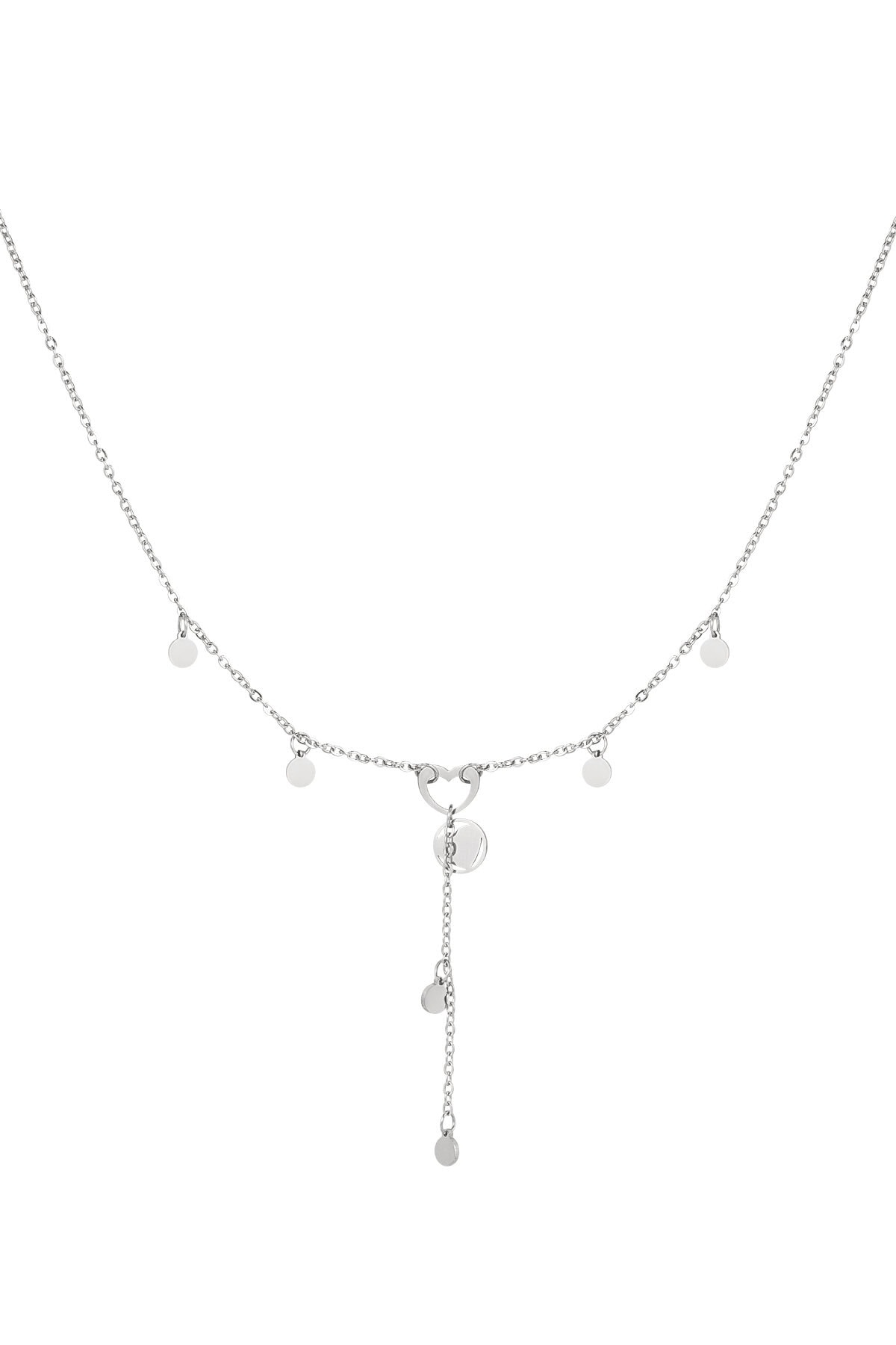 Ketting Miracle day. Deze Y- ketting is een echt halssieraad. Voorzien van diverse muntjes en een hartje in het midden. De ketting is gemaakt van Stainless steel, dus verkleurt niet. De lengte is 42 cm en is 5 cm verstelbaar.