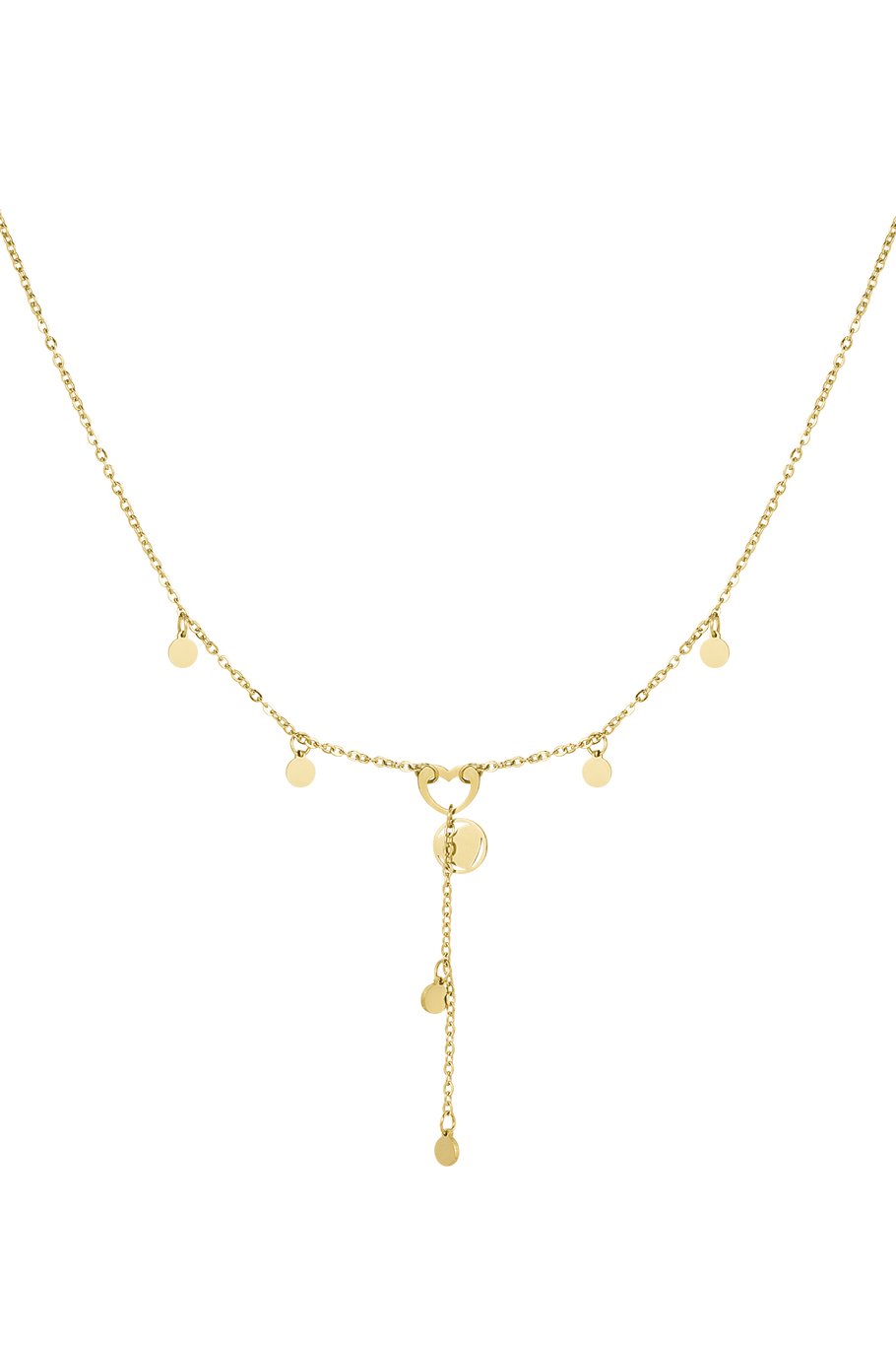 Ketting Miracle day. Deze Y- ketting is een echt halssieraad. Voorzien van diverse muntjes en een hartje in het midden. De ketting is gemaakt van Stainless steel, dus verkleurt niet. De lengte is 42 cm en is 5 cm verstelbaar. Verkrijgbaar in goud en zilver.