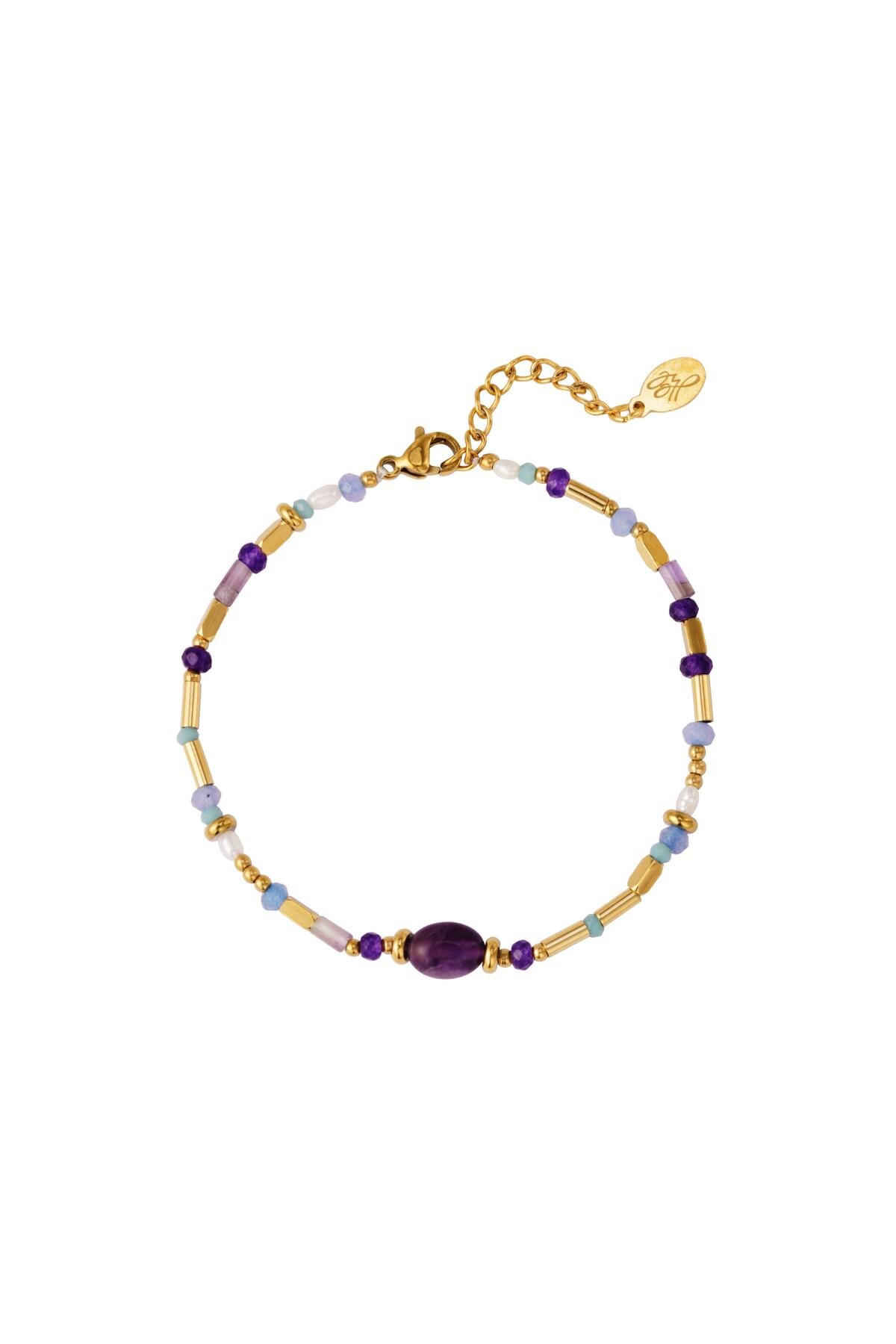 Kralenarmband paars en goud. Superleuk armbandje in goud en diverse tinten paars.