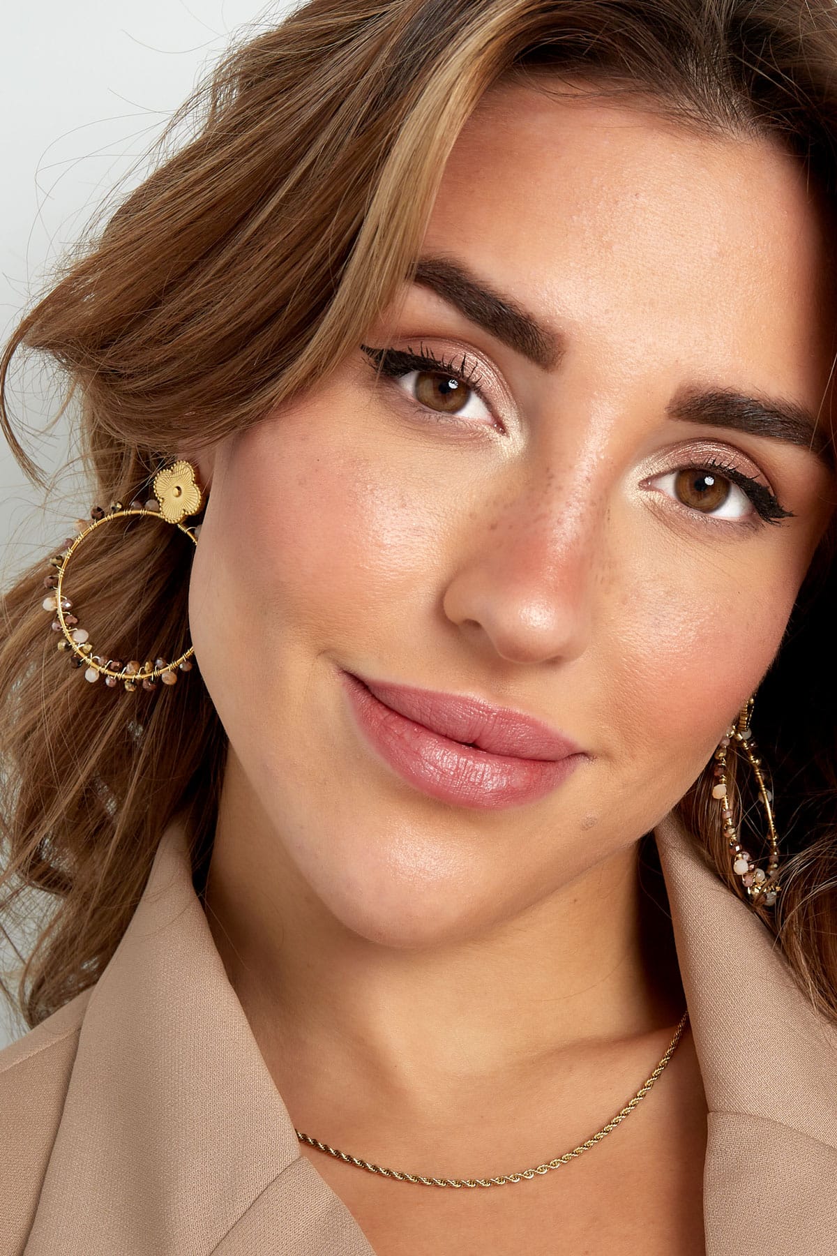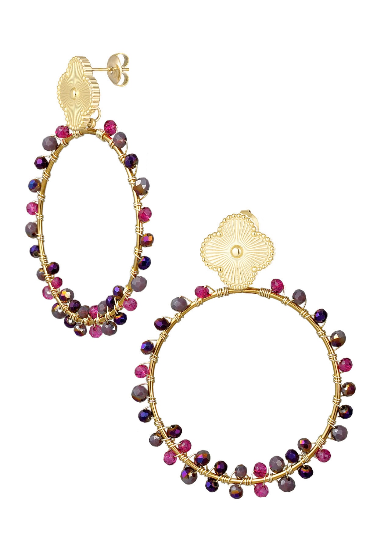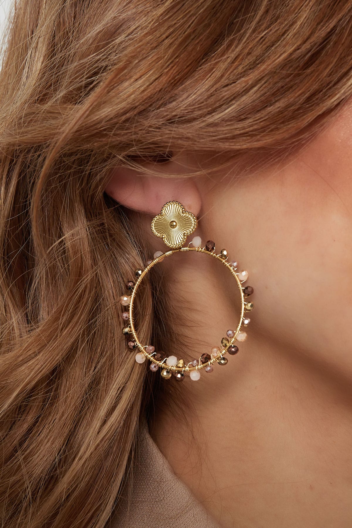 Kralenoorbellen met klaver. Gave statement oorbellen met een gouden klavertje en schattige kraaltjes. Materiaal: Stainless steel. Afmeting: 4,5*6cm. Shop ze in beige of paars.
