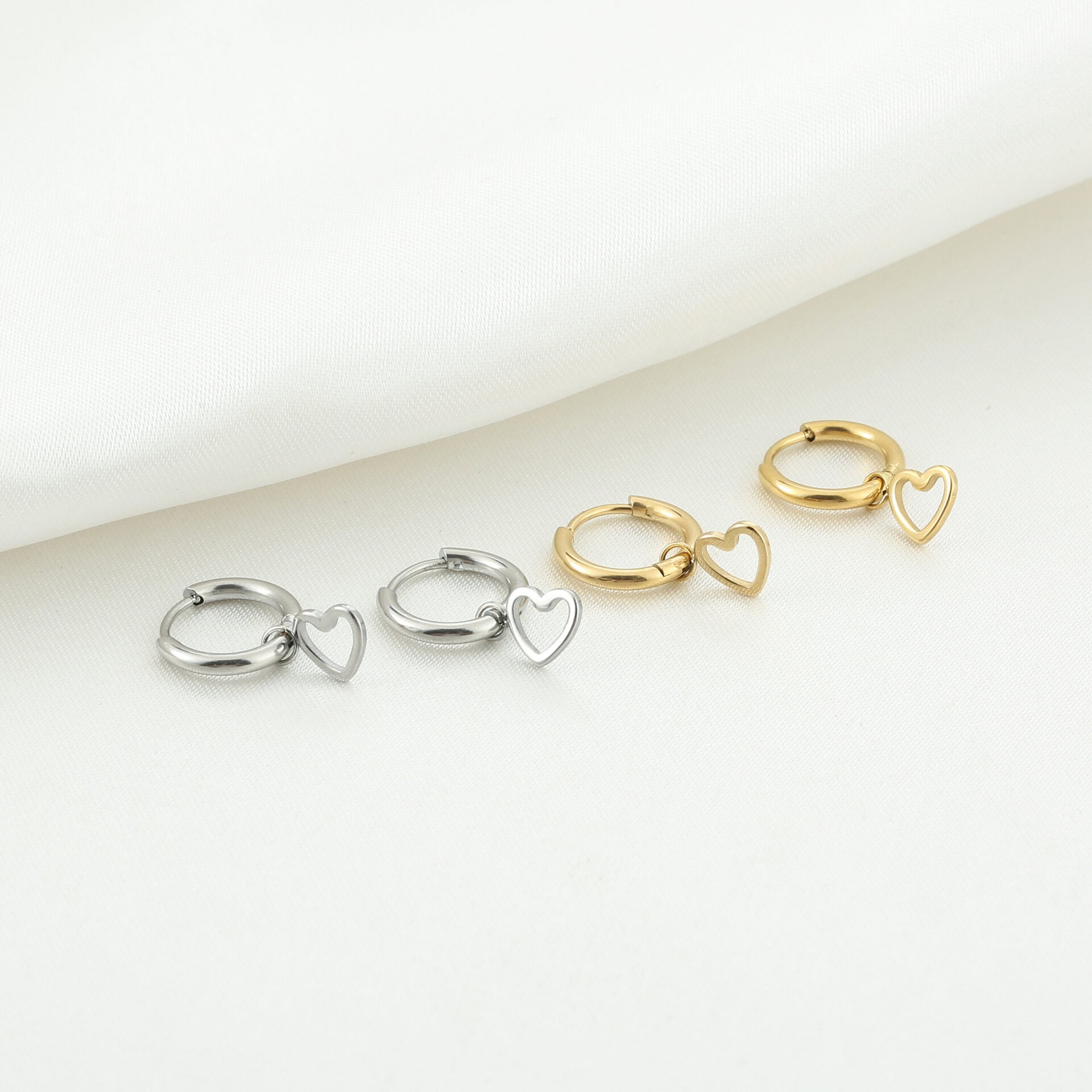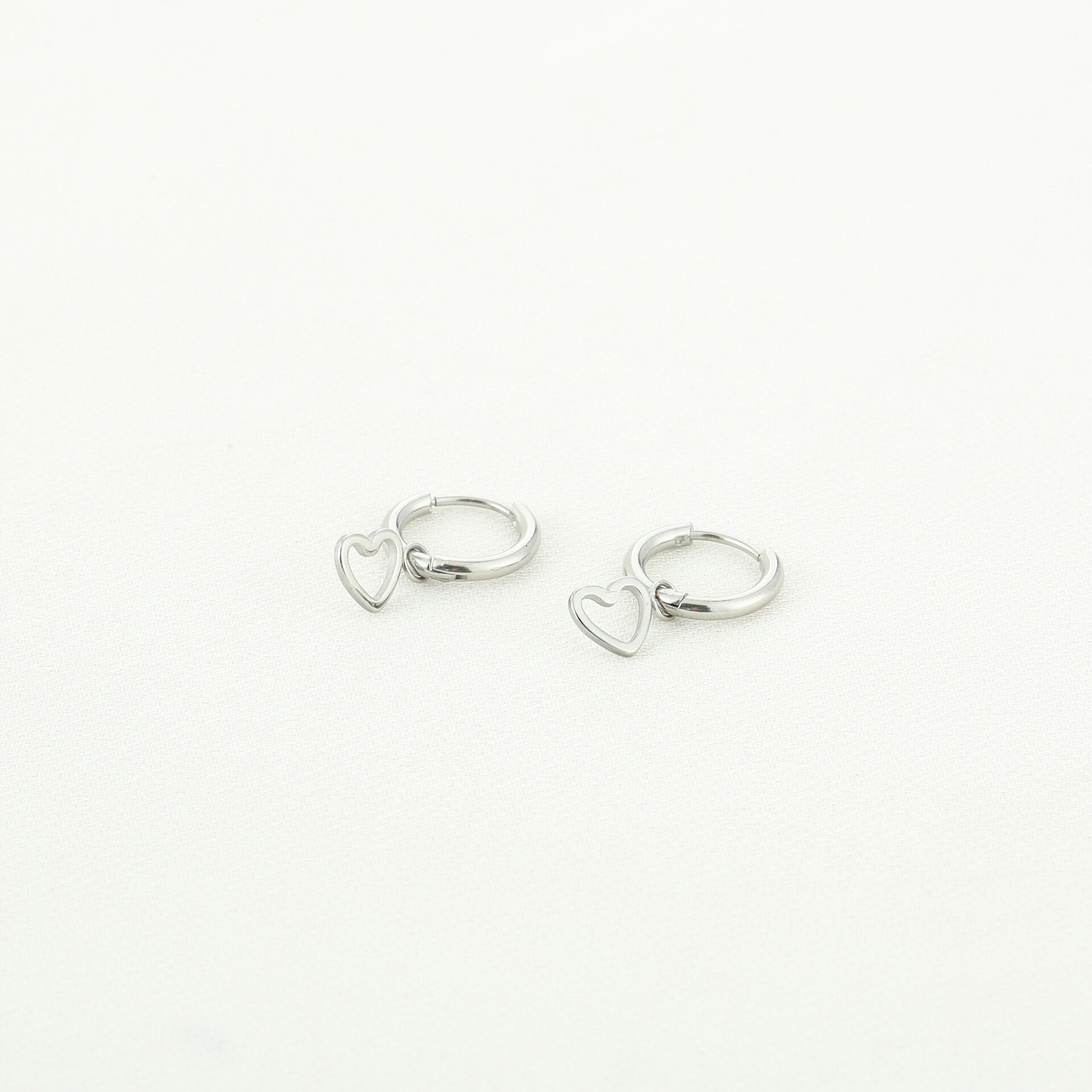 Oorbellen met open hartje. Lief klein oorringetje met daaraan een bedel in de vorm van een open hartje. De oorbellen zijn gemaakt van Stainless steel, dus verkleuren niet. De afmeting is 1,5 * 0,5 cm