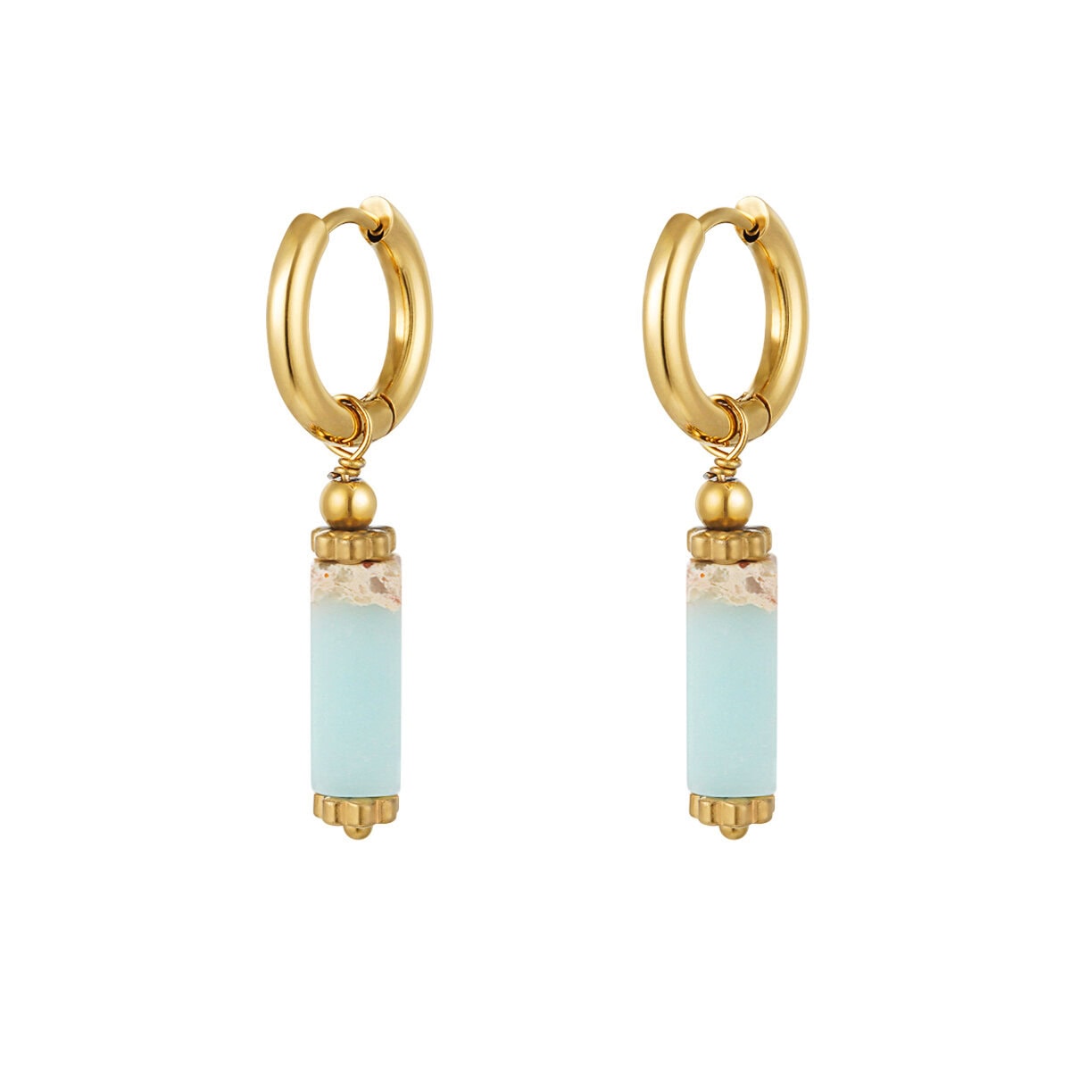 Oorbellen rechthoekige steen, Natuurstenen collectie. Prachtige gouden oorbellen met een rechthoekige steen in diverse kleuren. Deze oorbellen zijn bij elke outfit een echte aanrader. De oorbellen zijn bijvoorbeeld leuk te combineren met kleine gouden ringetjes! Ook kun je meerdere sieraden met groene details dragen voor een kleurrijke look. Oorbellen rechthoekige steen zijn gemaakt van stainless steel, hematiet en african pine stone