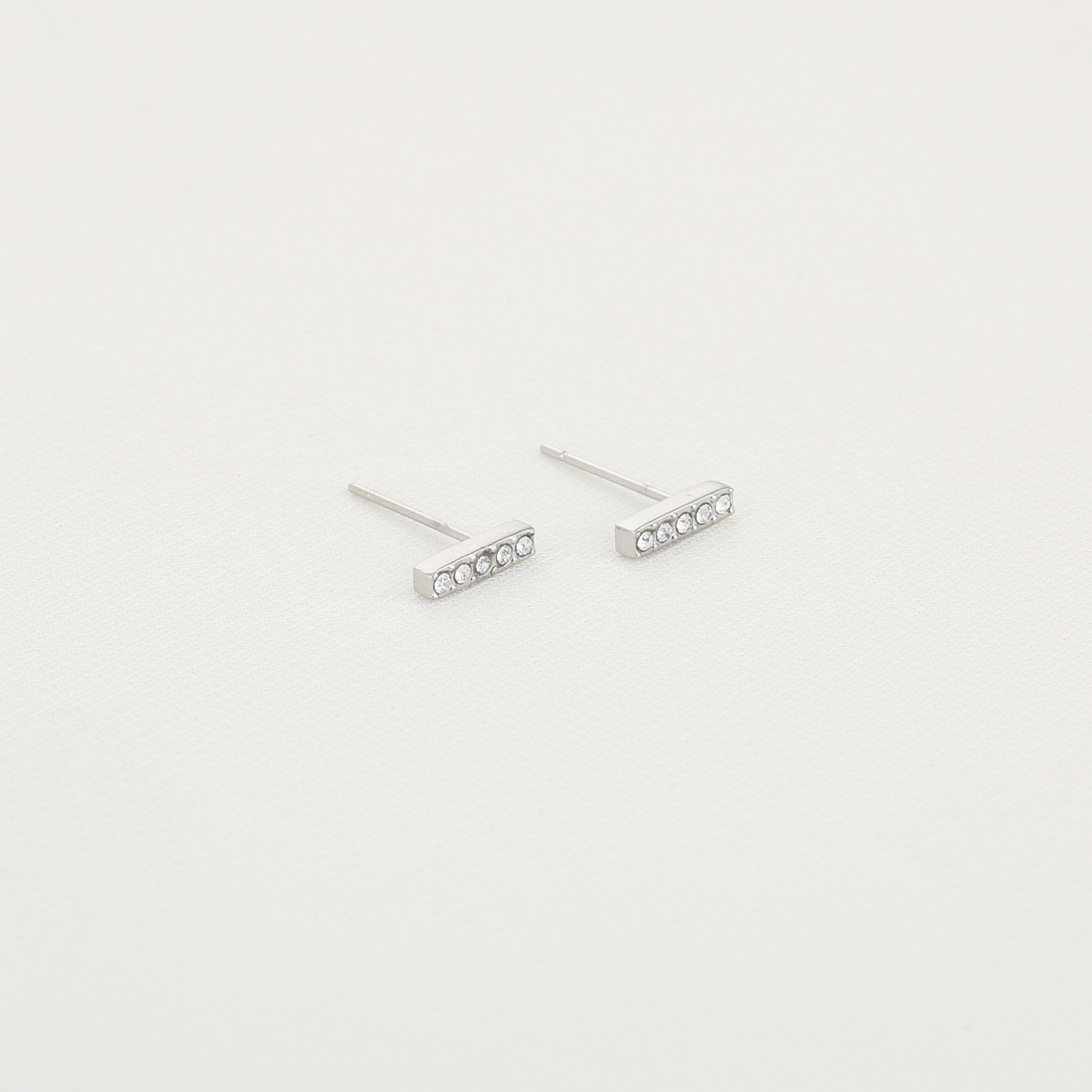 Oorknopje bar studs met zirkonia. Klein oorknopje in de vorm van een staafje met daarin zirkonia’s. Gemaakt van Stainless steel, dus verkleuren niet
