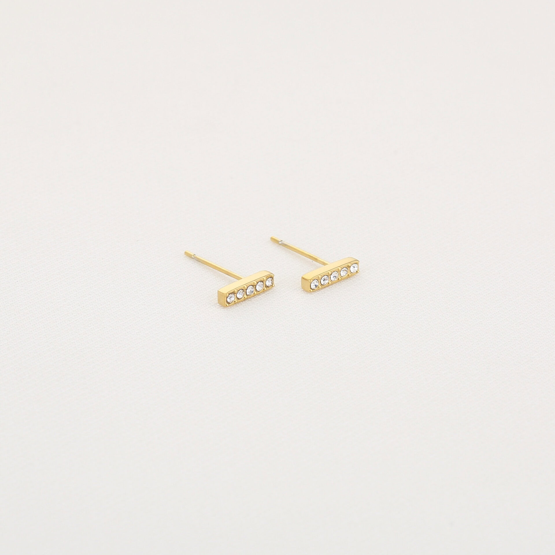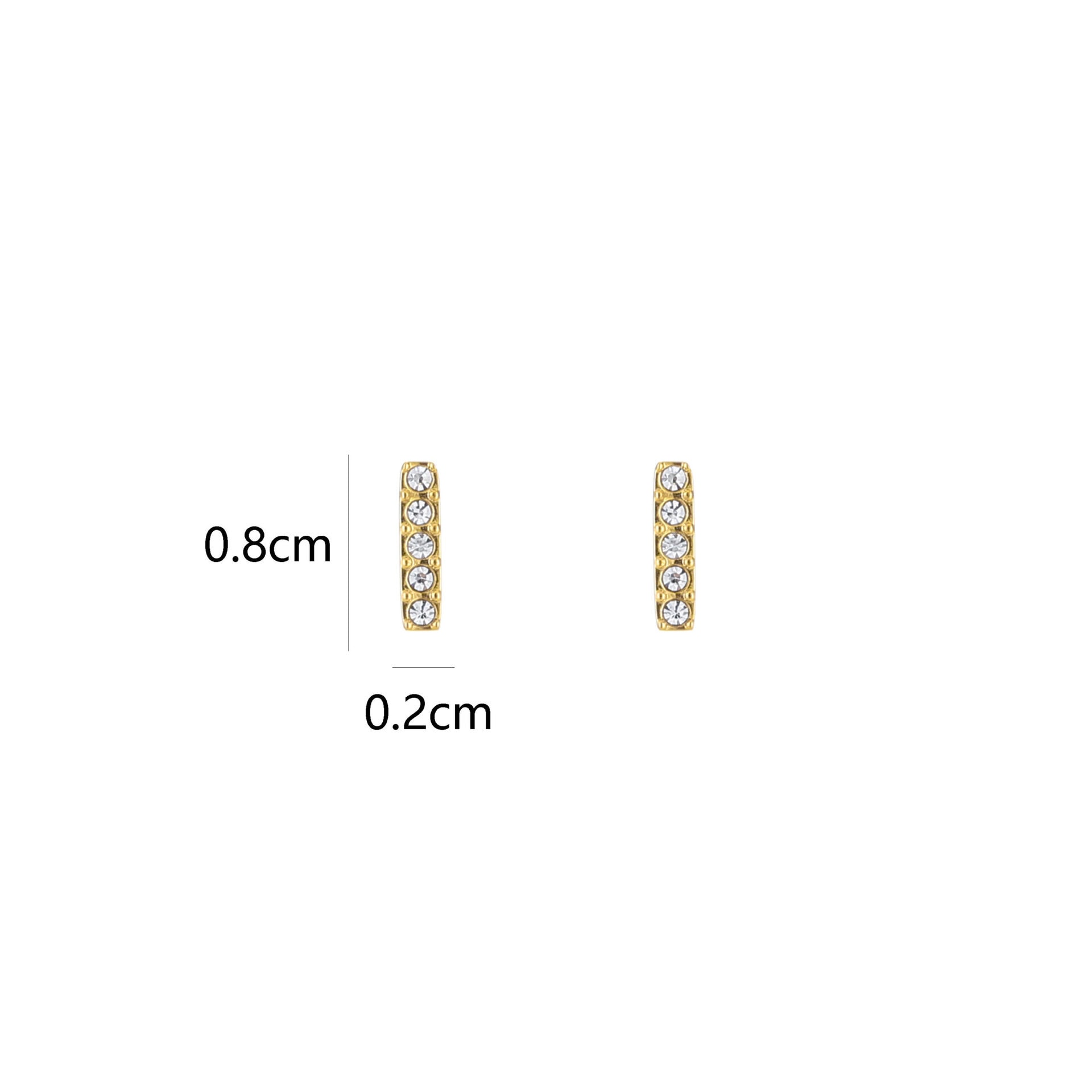 Oorknopje bar studs met zirkonia. Klein oorknopje in de vorm van een staafje met daarin zirkonia's. Gemaakt van Stainless steel, dus verkleuren niet. Afmeting 0,8*0,2 cm. Verkrijgbaar in goud en zilver.