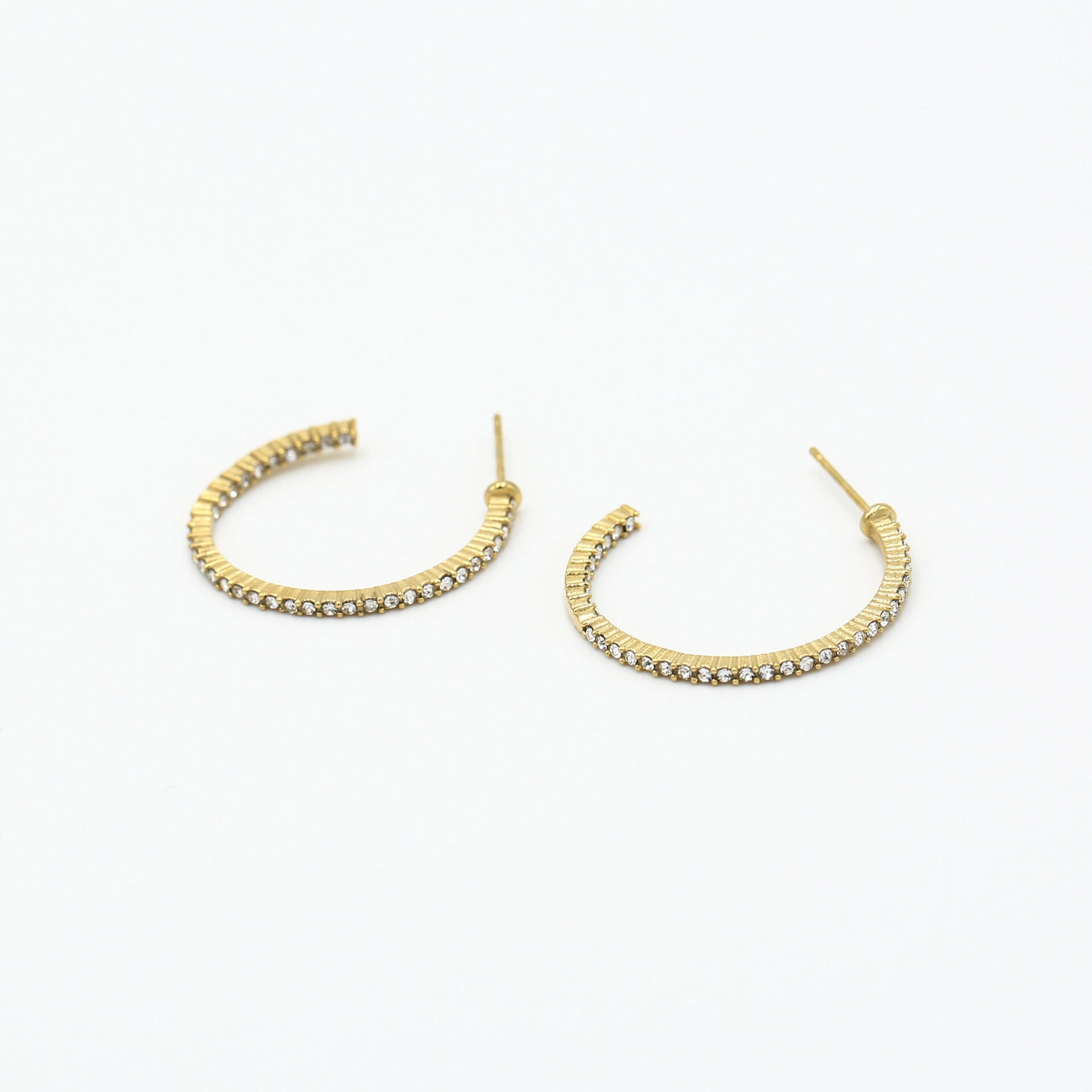 Oorringen strass. Mooie hoop oorbellen bezet met strass steentjes, voor de feestdagen of gewoon voor een feestelijk tintje aan je outfit. Materiaal: Stainless steel.