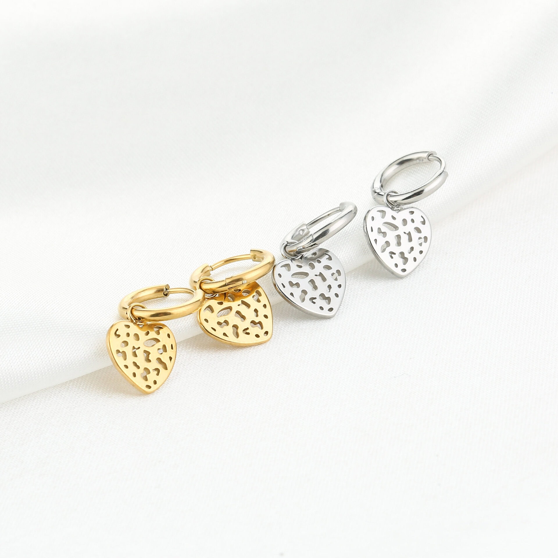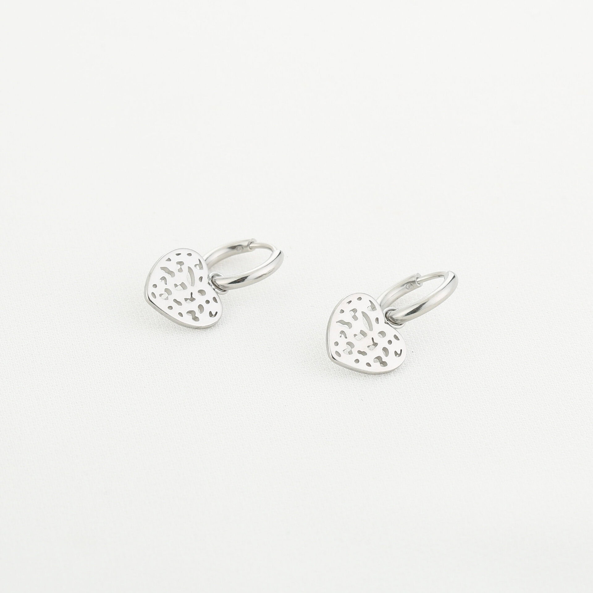 Oorringen zilveren hartje. Kleine oorringetjes met een klein hartje met luipaard motief. Gemaakt van Stainless steel.
