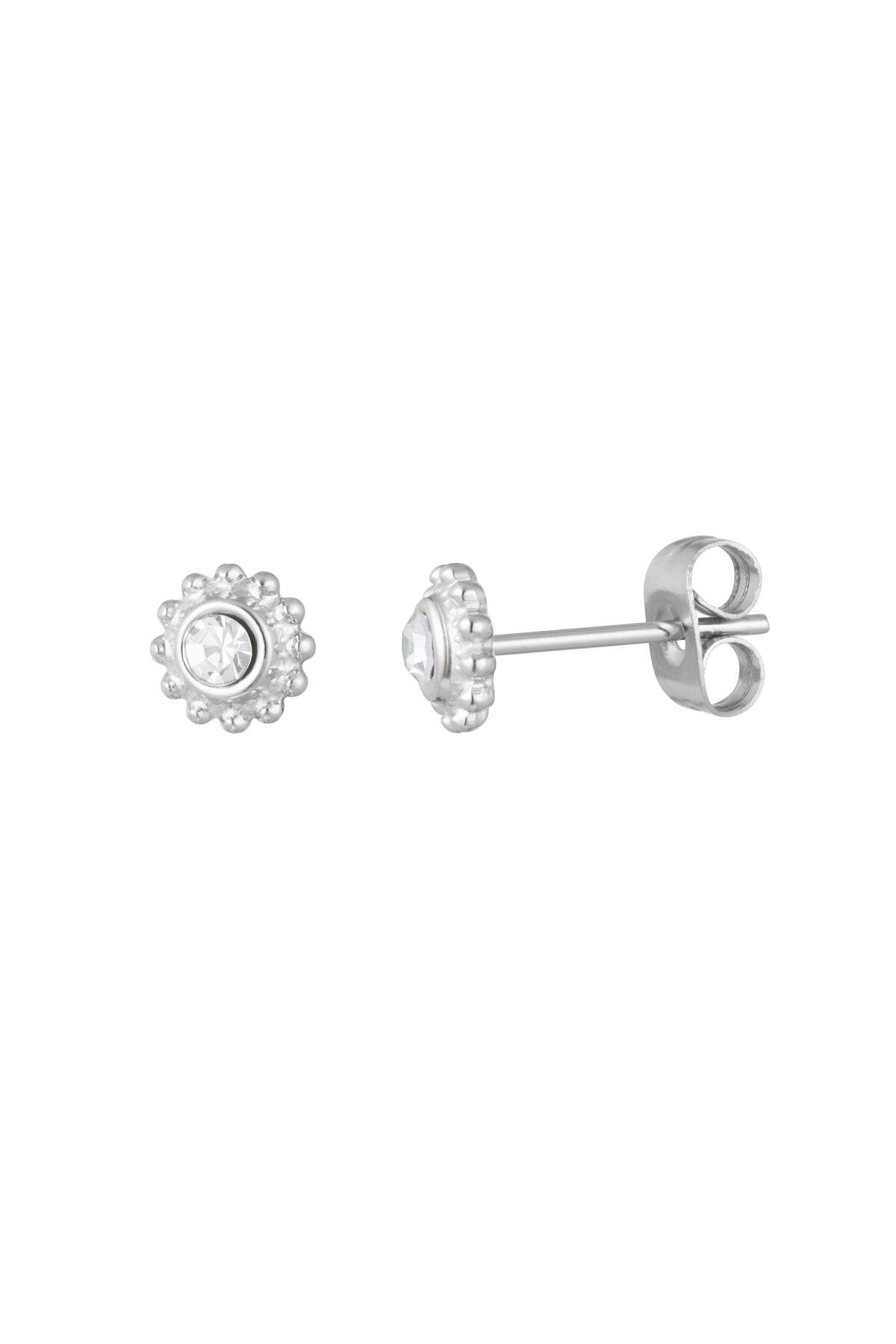 Oorsteker maan. Deze kleine roestvrijstalen oorstekers zijn perfect om in combinatie met andere oorbellen te dragen. Verkrijgbaar in zilver met wit steentje, goud met wit steentje en goud met roze steentje.