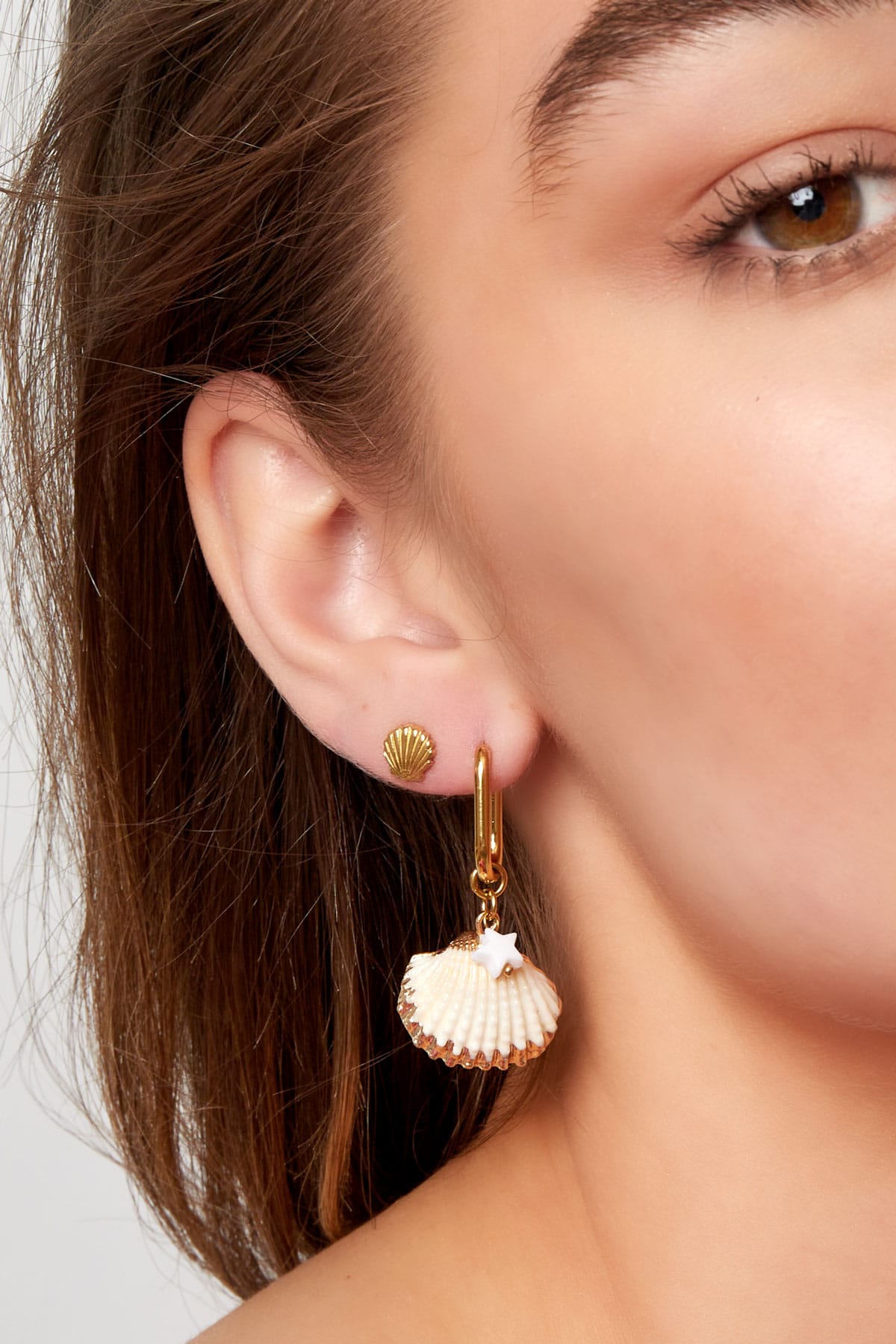 Oorsteker schelp. Kleine gouden oorstekers in de vorm van een schelp en zijn ook perfect voor in je tweede gaatje. De oorstekers zijn gemaakt van Stainless steel en ze zijn 0,7 cm groot.