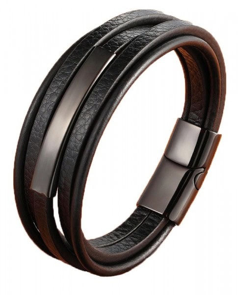 Stainless Steel with Leather Bracelet Silver-black